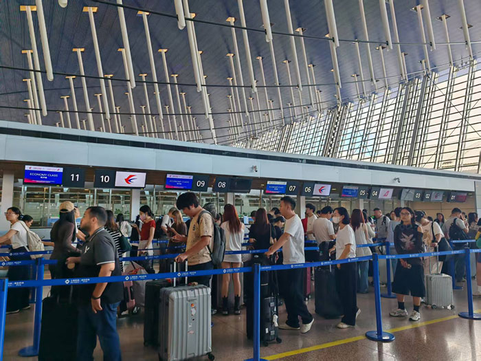 国内航线方面,东航深挖航旅市场需求,开通多条直飞新航线,包括上海虹桥直飞嘉峪关、和田,南京、杭州直飞伊宁,成都—青岛、大连—鄂尔多斯、大理—深圳等航线。2025年暑运,东航执飞国内航线达813条,平均每周执飞国内往返航班约1.89万班,以充足的运力为国内旅游市场繁荣注入动力。