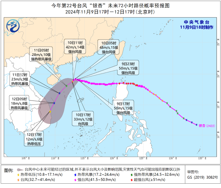 据气象部门预测,今年第22号台风“银杏”(强台风级)11月10 日上午将转向西南方向移动。受台风外围环流影响,珠三角沿海、海南岛有6-8级东北大风。请关注香港、澳门、珠海、海口、三亚、博鳌等机场航班变化情况。后续东航将密切关注台风动向,适时调整航班运行,保障旅客安全出行。