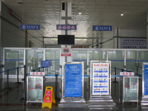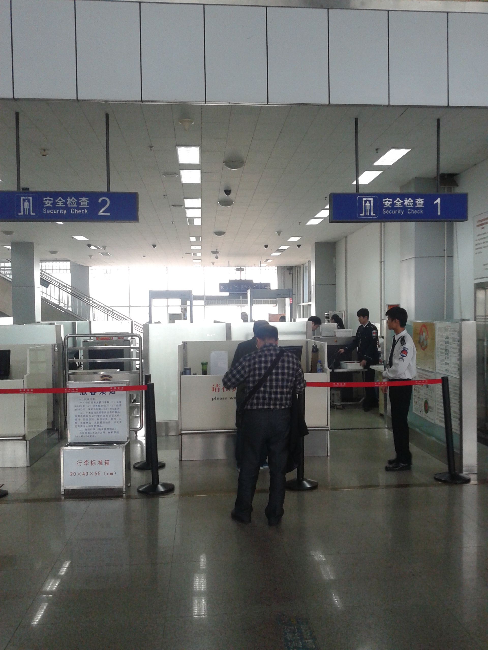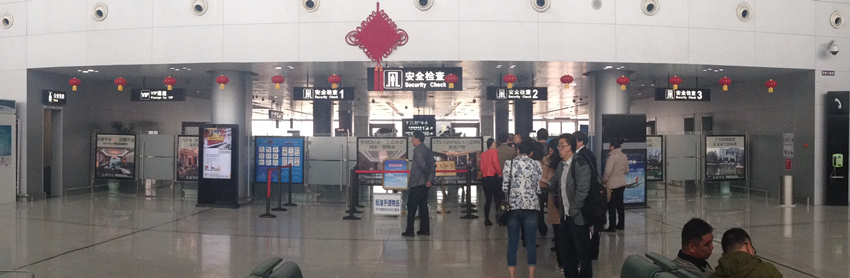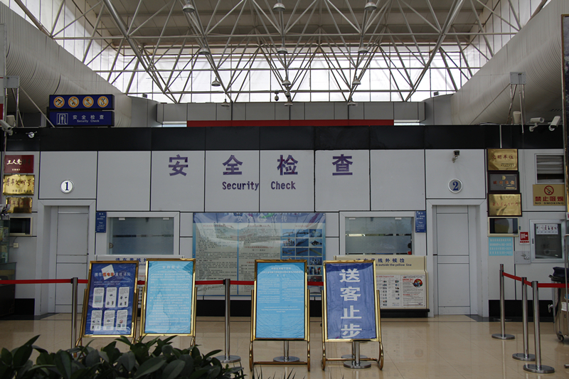 乘坐国内航班的旅客请前往国内出发大厅安检入口进行安全检查,安检口位于国内出发大厅2楼中间。